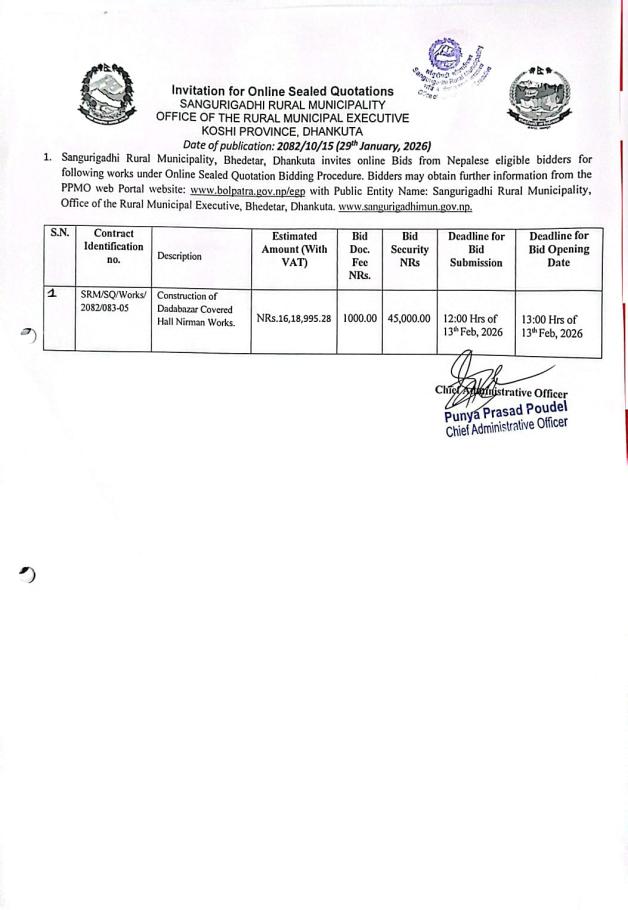 डाँडाबजार कभर्ड हल निर्माण सम्बन्धी आशयको सूचना।