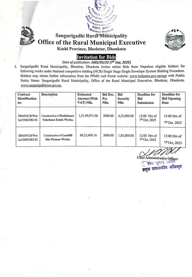 डाडाँबजार याक्चना सडक र ल्याडफिल्ड साइड सम्बन्धी सार्वजानिक सुचना ।