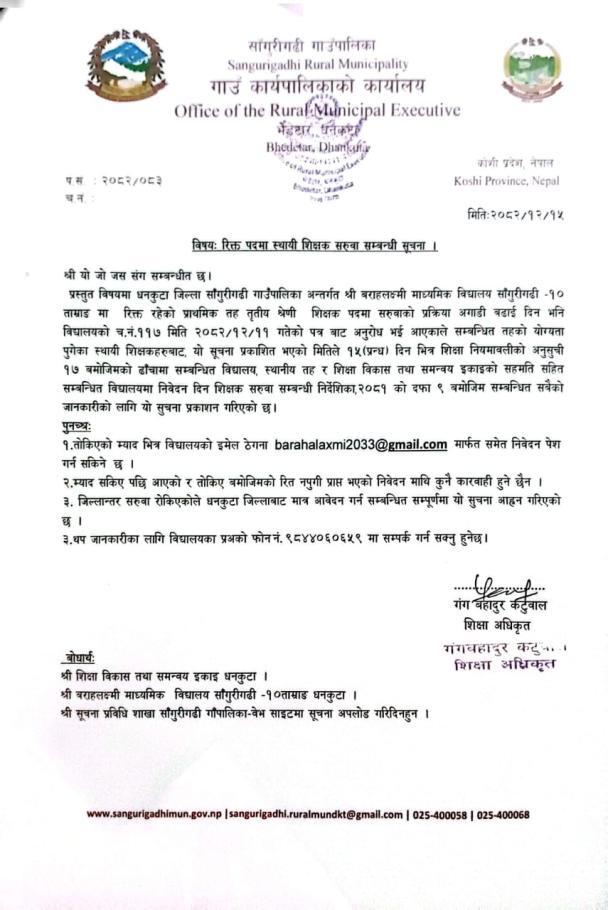 रिक्त पदमा स्थायी शिक्षक सरुवा सम्बन्धी सूचना।
